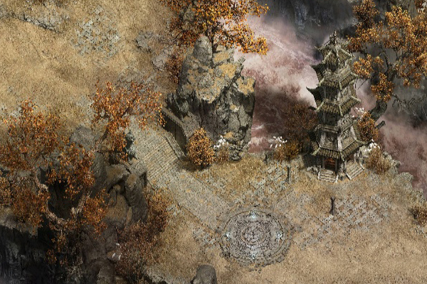 位于一道悬崖之上,分为三层,仿佛建在天上一般,云层都在其下。问心梯接引过客前往西天的僧侣人,拿着一盏油灯,实际为接引掌灯僧侣人,传说其法力无边能照亮世间险恶,能驱散世间黑暗。若没有非凡之姿,即使上船,也无法过问心梯。