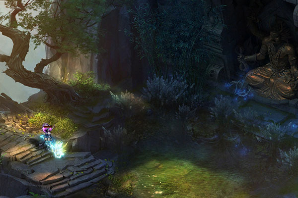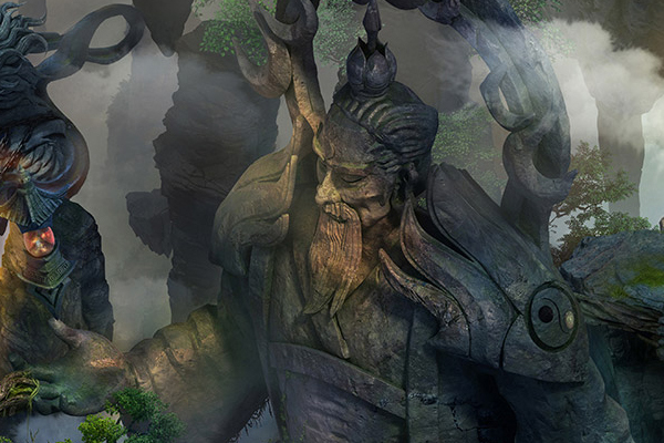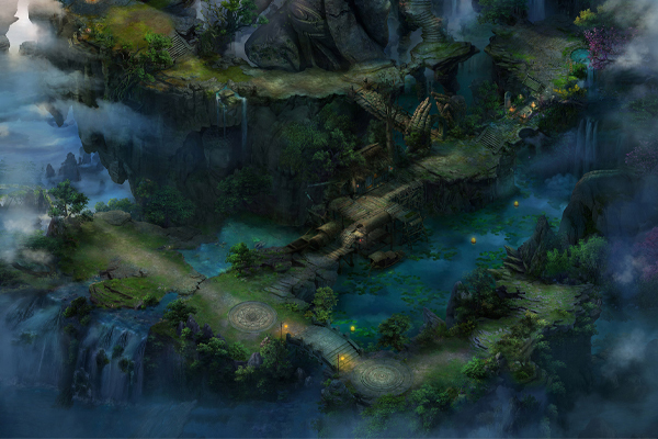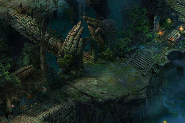 方寸山千峰排戟,万仞开屏,在山顶的最高处是一轮弯弯的月,月亮中间有一个论道台。方寸山方位隐秘,若非有缘,山门在前却也只会错过。即便是找到了方寸山,在枯藤缠老树,古渡界幽程的方寸山上找到上山的道路。