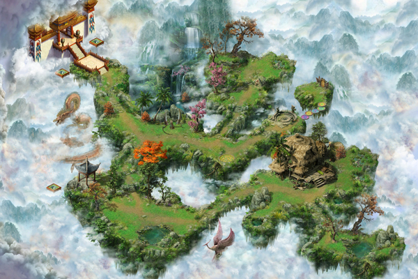 云顶天宫地处西凉,号称空中死城,地域虽小却十分富饶。宫内有生命之泉,是云顶天宫的最大的泉水,也是云顶天宫民灵力的来源。