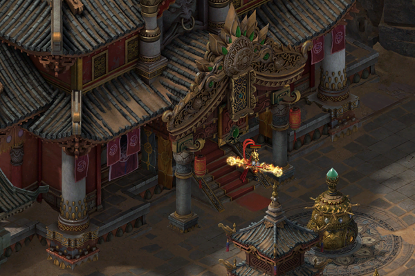 小雷音寺仿照大雷音寺而建,寺前有黄金台、接引桥等等,寺内金碧辉煌,却处处透着邪气,中间最大的如来佛祖就是黄眉大王变化。