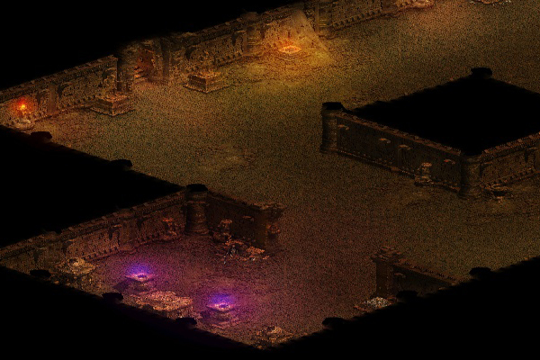 沙漠废城位于龙城的东北方,无数根巨大的石柱支撑着天花板。墙壁上、石柱上、地板上,依稀还能看到鲜红的血迹。