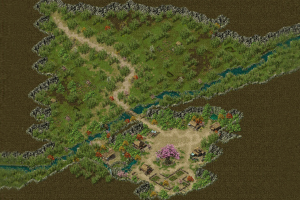 民房主要集中区域,此处为木质单层尖顶房屋,中心是一颗五百年的金色杏树,此处有仓库、民房、药店、杂货铺、铁匠店、书店、鸡圈、服装店、肉铺等建筑物。