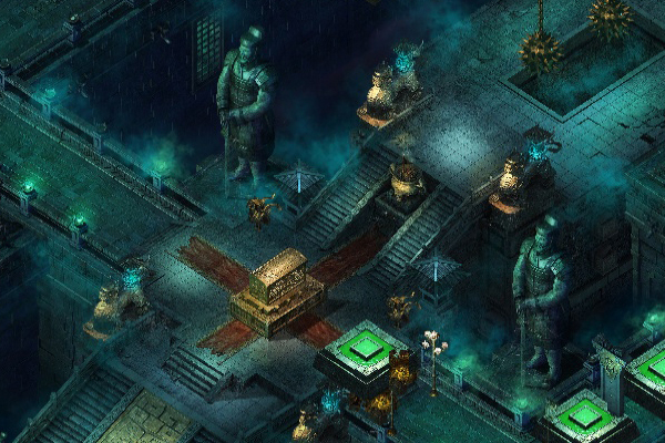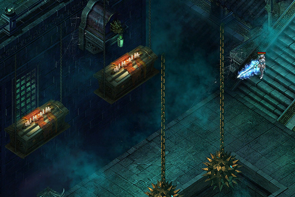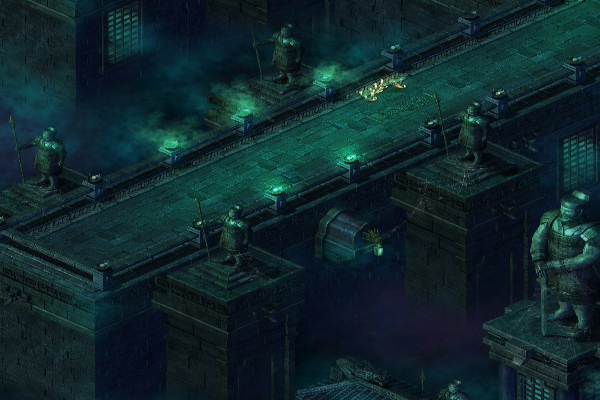 位于墓王大殿之前,紧扼进入大殿的唯一通道,是死卫们集中守护墓王之处。此地有一些吊笼关押擅入者,还有巨大的武卫雕像。