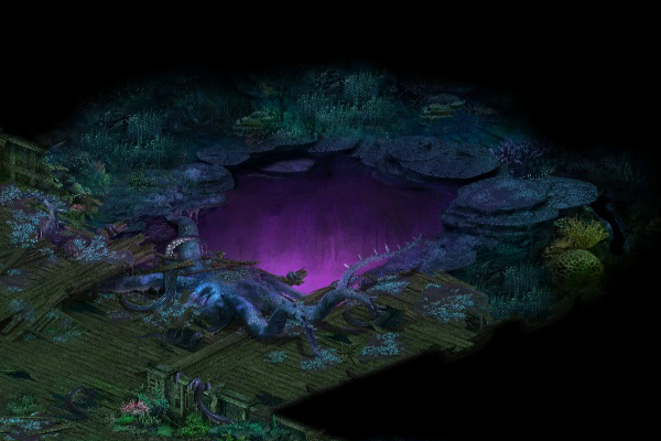 地表狭长,四周有水草的水生植物,这里便是海底秘境的入口之处,在入口处有着无数前来寻宝的溺死亡灵在游荡。