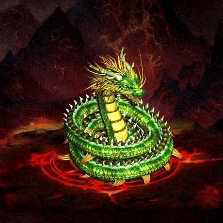 一条青龙,角似鹿、头似驼、眼似兔、项似蛇、腹似蜃、鳞似鱼、爪似鹰、掌似虎、耳似牛。神龙将身体盘起,龙头探出。通常这是龙在捕猎之前的准备动作,一旦发现目标,一击破敌。