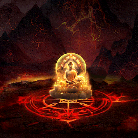 佛祖端坐在莲台之上,身穿金色袈裟,头戴宝冠,面容慈悲,目光如电,如青莲华。辉光艳艳满乾坤,结彩纷纷凝宇宙。诚为佛子不虚传,胜似菩提无诈谬。
