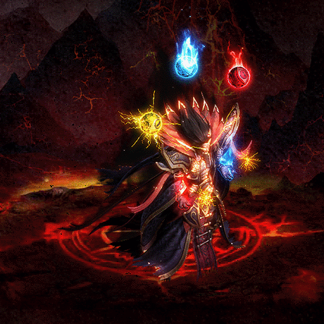 燃灯道人拥有无上法力,身高9尺,双脚站立,黑色的头发,面孔坚毅神武,眼中会发出黄色的神光,全身穿着黑色的金丝法袍,头顶三颗能量法球,散发着红色、蓝色、黄色的电光。
