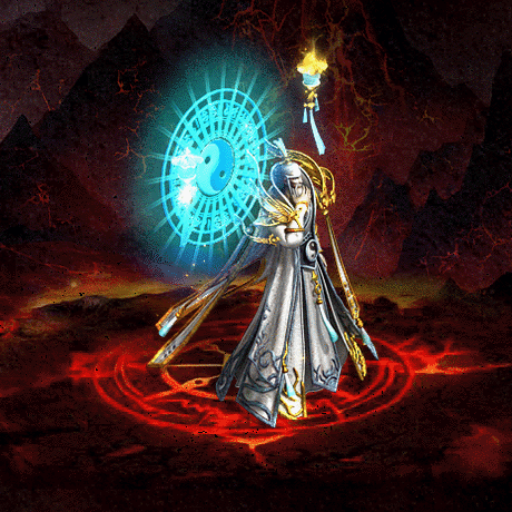 元始天尊身高8尺,具有万劫不坏之身,身着金丝道袍,雪白色银发,头顶金色道冠,肩膀处有黄金飘带。髯下长长的胡须,身前两盏无极天灯漂浮,后背散发着太极之光。面色慈悲而不失庄严。
