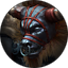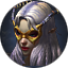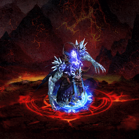 冥界女王海拉本体为女性体型,头发为蓬起来的白色,上半身近乎赤裸,皮肤为蓝紫色,脸型为尖锐倒三角,头顶有双牛角,双手巨长几乎坠地,身上也有牛角装饰,脚踩幽蓝法轮,是海拉移动的法器。