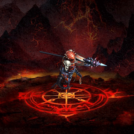 塔纳托斯穿着紫色骷髅甲,头部被一层红色兜帽所包围,无法看清面部,上面长着细碎小刺角,下半身没有双腿,由黑色锁链缠绕着。下身有两个尖锐刺角,可以轻易刺穿敌人厚重的铠甲。