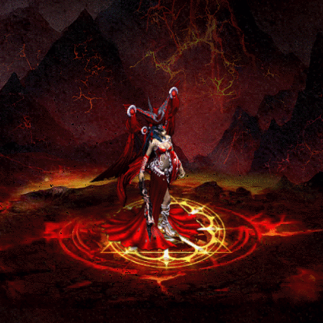 美狄亚身材高挑,上身穿暴露的红色比基尼,下身是中开的长裙,头发梳着夸张上的发式,顶有红帐,据说她身上的红色布料是由无数处女的鲜血染红的。腰间有骷髅恶魔银饰腰带。面容妖艳。