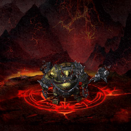 魁梧胖大,皮肤是诡异绿色,手臂和肩膀上都缠绕着铁链和尖锥铁环,腰缠着铁腰带,两只手上各拖着一个流星锤,锤石不规则的大铁块。身上和武器上都沾染着敌人的鲜血。