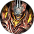 蚩尤身材魁梧,肩上飘扬蓝丝带,上身裸露,下身穿着战甲,手持一柄神兵利器。背后变化出一对形似兽类的、强健有力的赤红色手臂。一手如兽掌张开,一手紧握一柄尖槌武器。