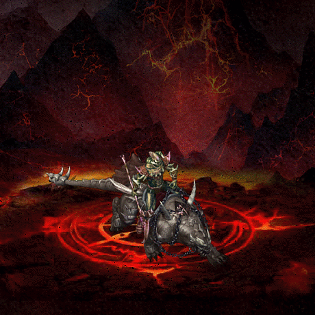 人族成年男子体型,面目凶恶,残忍好战,胯下骑着凶恶的灰色战豹,战豹头戴金色面具,肋生双刺,身绑锁链,尾巴上附着一层骨鞭,浩瑞士一手持长枪武器,一手揽着铁链缰绳。