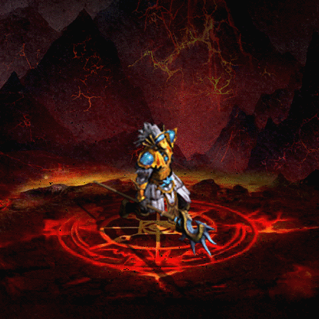 荷鲁斯鹰首人身,头顶有白色长毛。身上穿着金色铠甲,肩部有两个硕大的蓝宝石,腰部有太阳形状的蓝宝石,腰上围着白色亚麻短裙,足蹬金靴。手持沃斯能量手杖,手杖上有安卡生命符号。